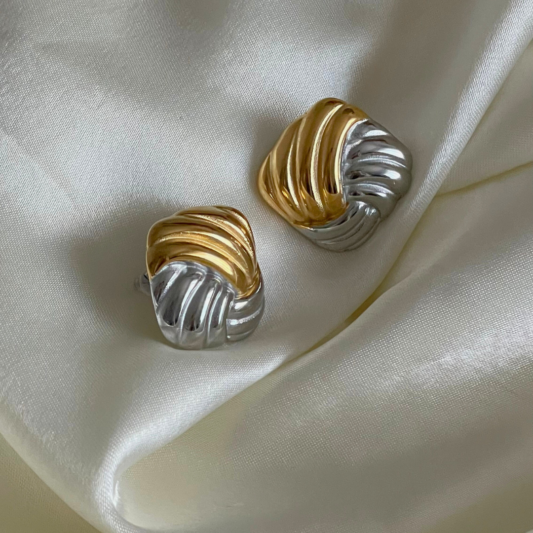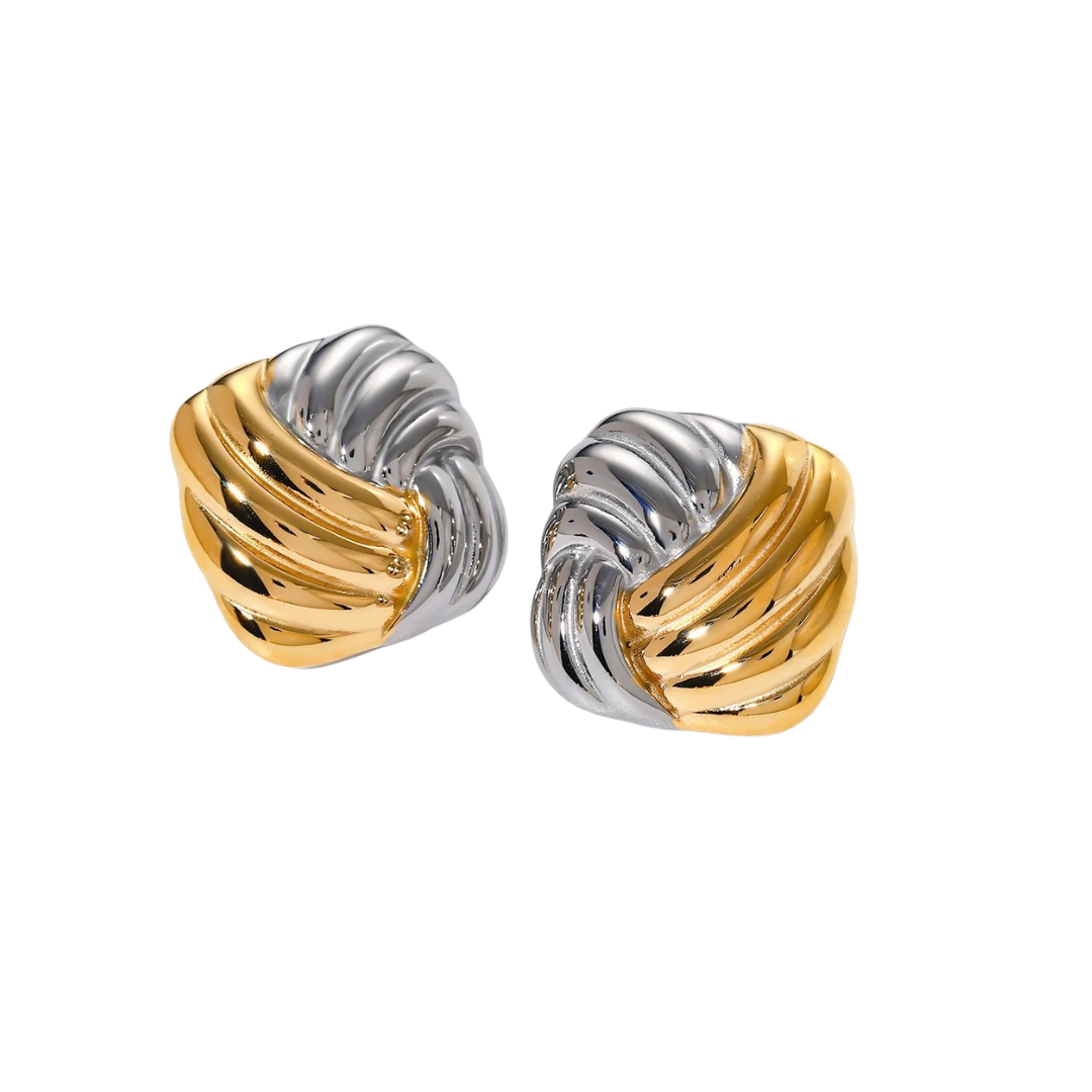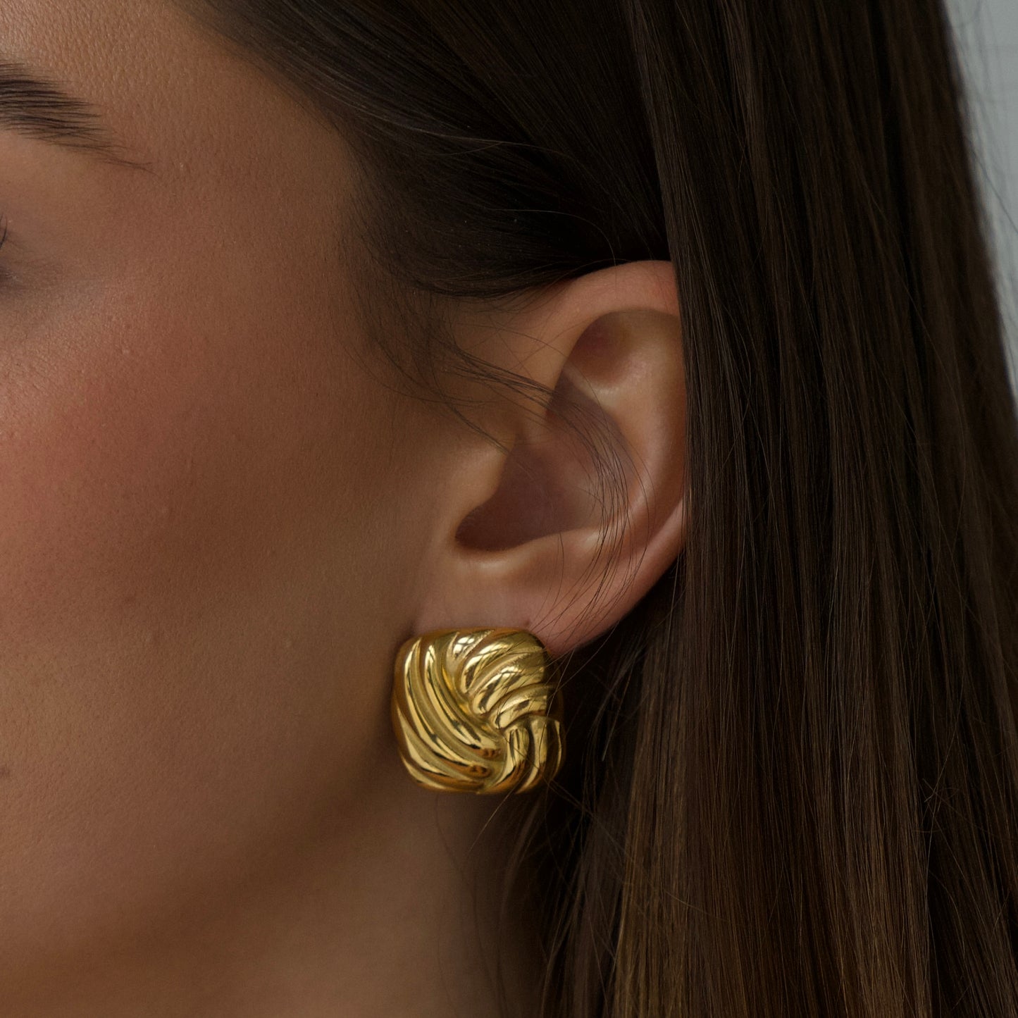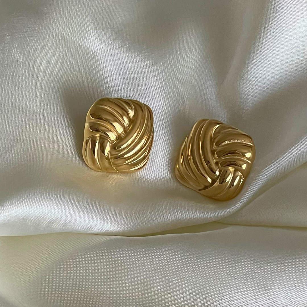 A 18K gold square shape with ribbed design. An everyday staple that is chic and timeless.